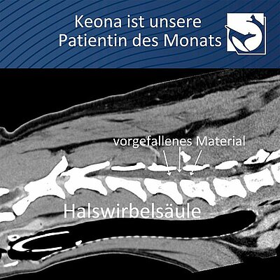 Noch am selben Abend wurde Keona notoperiert. In der riskanten OP wurde die vorgefallene Bandscheibe entfernt, woraufhin auch eine leicht blutige Flüssigkeit aus dem Wirbelkanal zum Vorschein kam. Diese war vermutlich die Hautursache für Keonas Lähmungserscheinungen.
