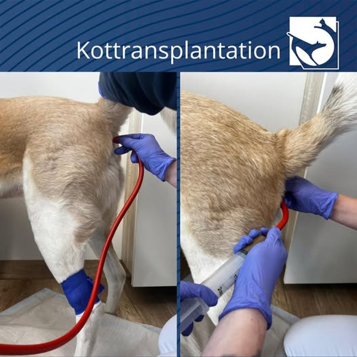 Kottransplantation, auch als fäkale Mikrobiota-Transplantation bezeichnet, ist genau das, wonach es klingt. Hierbei wird mit dem Kot eines gesunden Spendertieres das gesunde, sehr diverse Mikrobiom auf einen erkrankten Hund übertragen.